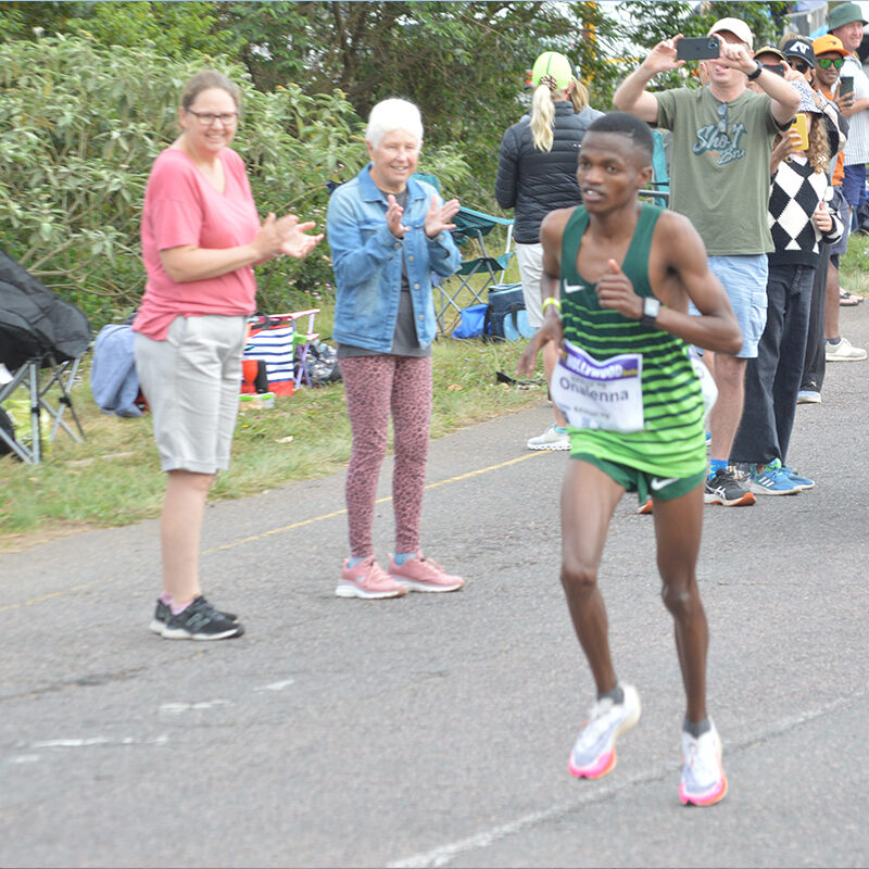 Road running is the sport of running on a measured course over an established road. This differs from track and field on a regular track and cross country running over natural terrain.